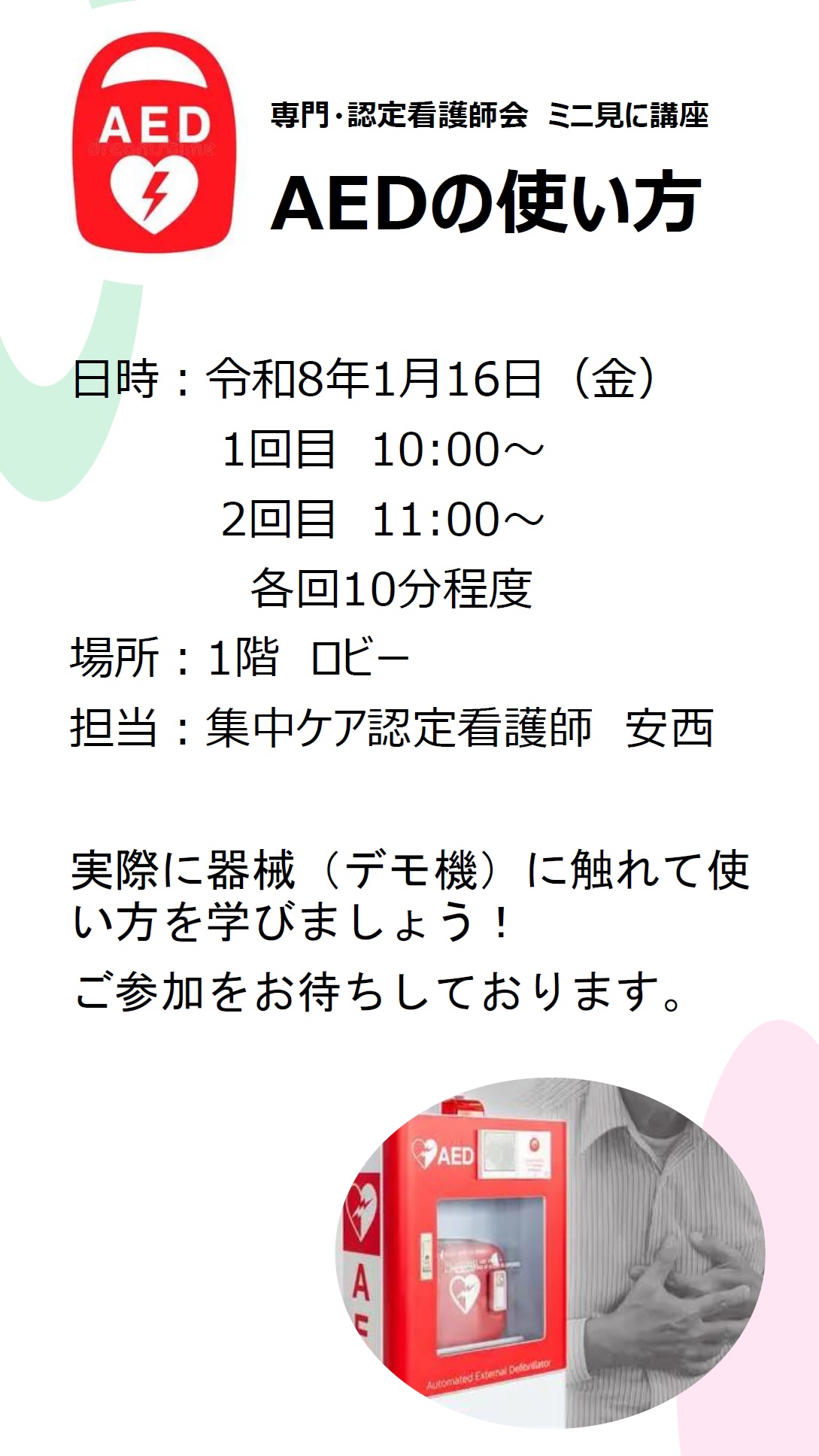 専門・認定看護師会 ミニ見に講座 AEDの使い方